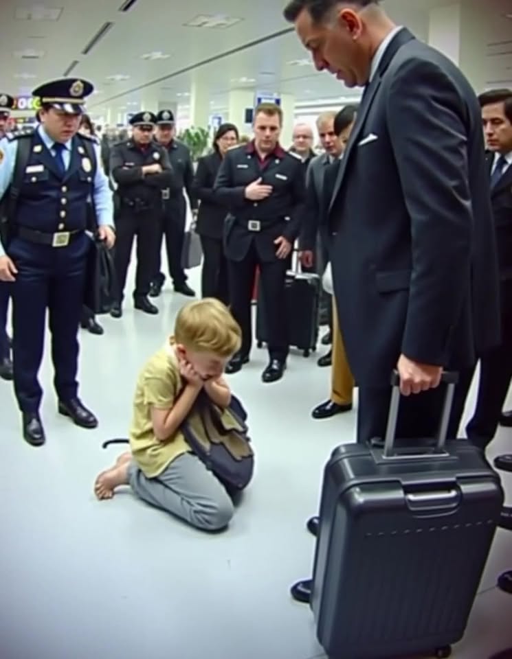 The voice was sharp, urgent, and cut through the noise of the busy terminal at John F. Kennedy International Airport. Dozens of travelers turned their heads, scanning for the source. Near a row of vending machines stood a skinny boy, his clothes ragged, hair unwashed, clutching a torn backpack. His eyes were locked on one man: a tall, well-dressed businessman in a tailored navy suit rolling a sleek carry-on.