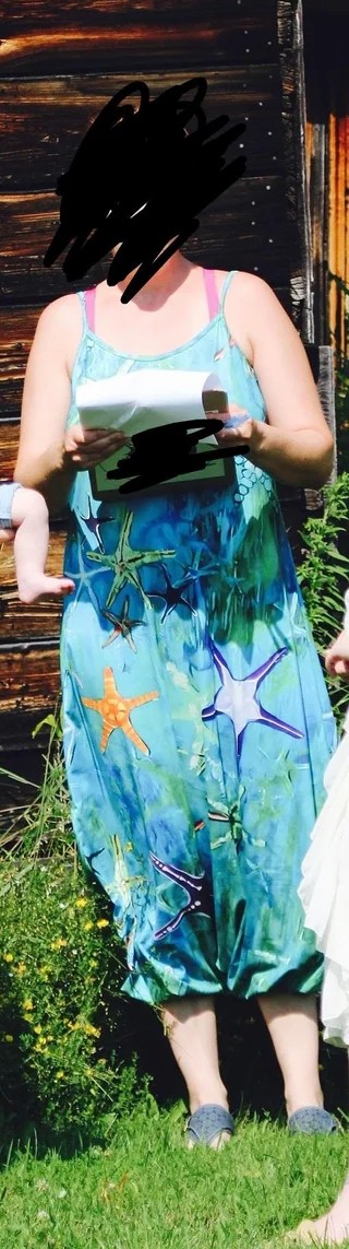 My husband and I live in a small town and our municipal office does civil marriages. We live really far from family so we decided not to invite anyone as it was only fair if we couldn’t invite everyone. We got married on our property, just us two, our 6 month old and we had the required 2 witnesses, one of which was the photographer. We wanted nice photos to be able to at least share with all the people we didn’t invite. The paperwork asks if there would be a photographer and we checked off yes. The day of our officiant (who works at our municipal office) shows up and I am floored by the outfit she chose. A blue ocean themed dress with starfish all over it (we are getting married basically in a forest) and to top it off she’s wearing a hot pink bra with the straps completely visible. So yeah all our ceremony photos were absolutely ruined because she sticks out like a sore thumb. I was under the impression that officiants dressed neutral like pants and a button up or something but this woman looked like our wedding was a stop on her way to the beach.