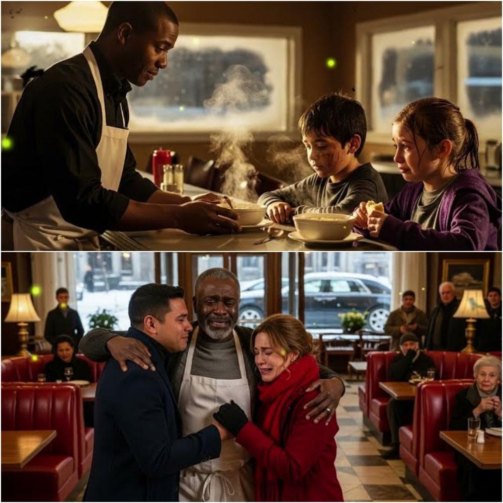That winter storm had been cruel. The kind that silences even the trains. He was about to lock up when he saw two small faces pressed against the glass — a boy and a girl, trembling, barefoot, the kind of hungry that no child should ever know.