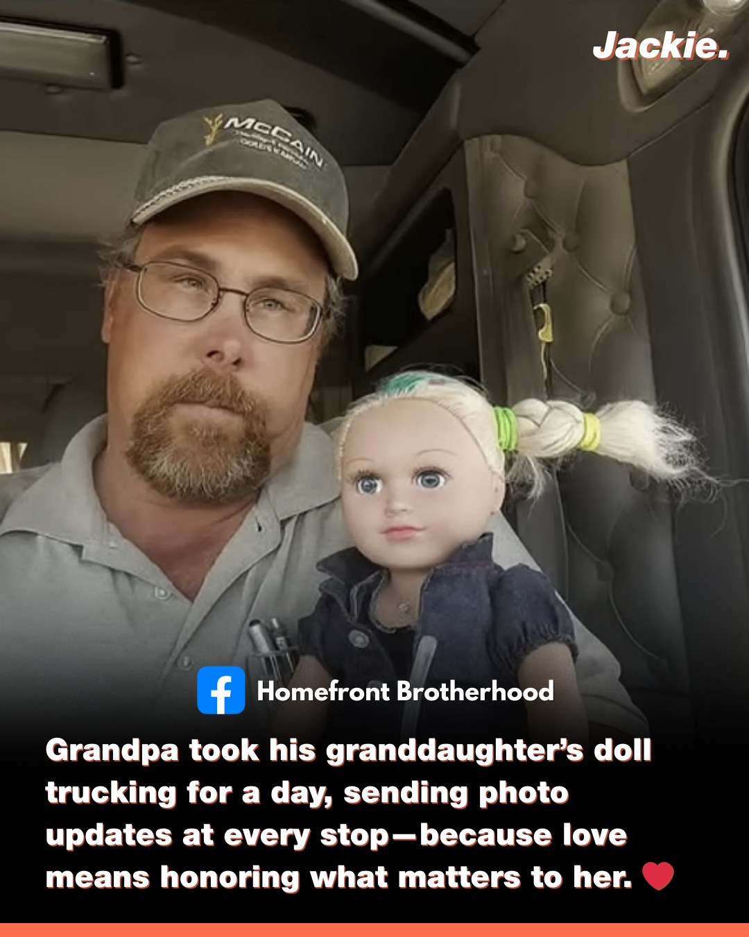A granddaughter asked her grandpa to babysit her doll for the day. He didn’t just say yes—he made it an adventure on the open road, complete with photo updates at every stop. This is what love looks like in action. ❤️