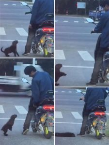 🚦 While a motorcycle was stopped at a red light, something unexpectedly melted the hearts of many onlookers β€” a little stray puppy. 🐢✨ Fearlessly, it ran out from the side of the road, straight toward the bike, as if danger didn’t exist. Once it reached the rider, the tiny pup began to beg with […]