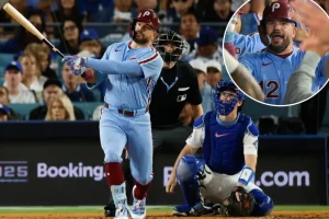 LOS ANGELES — Kyle Schwarber homered twice, his first towering shot clearing the right-field pavilion in a three-run fourth inning, and the Philadelphia Phillies avoided a sweep with an 8-1 victory over the Los Angeles Dodgers in Game 3 of their NL Division Series on Wednesday night. It was the first Schwarbomb of the postseason […]