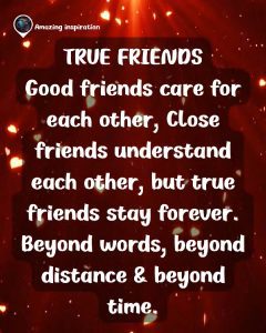 TRUE FRIENDS π« Good friends care for each other π€ Close friends understand each other π but true friends stay forever β beyond words, beyond distance, and beyond time β€οΈ