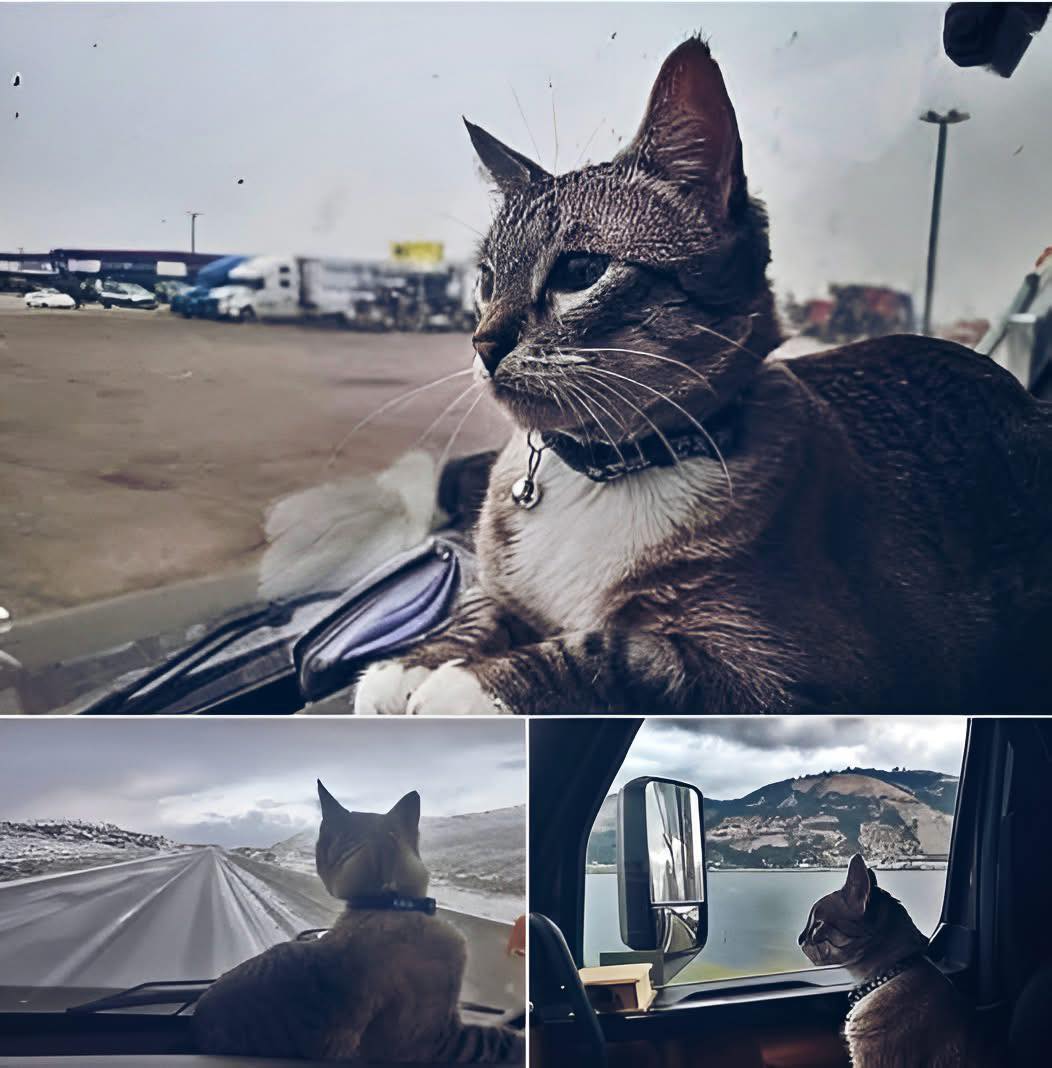 What started as a temporary plan soon turned into something permanent. Grayson became their little co pilot, sitting proudly on the dashboard watching endless roads, curling up on their laps during rest stops and impatiently meowing whenever they stopped for gas.