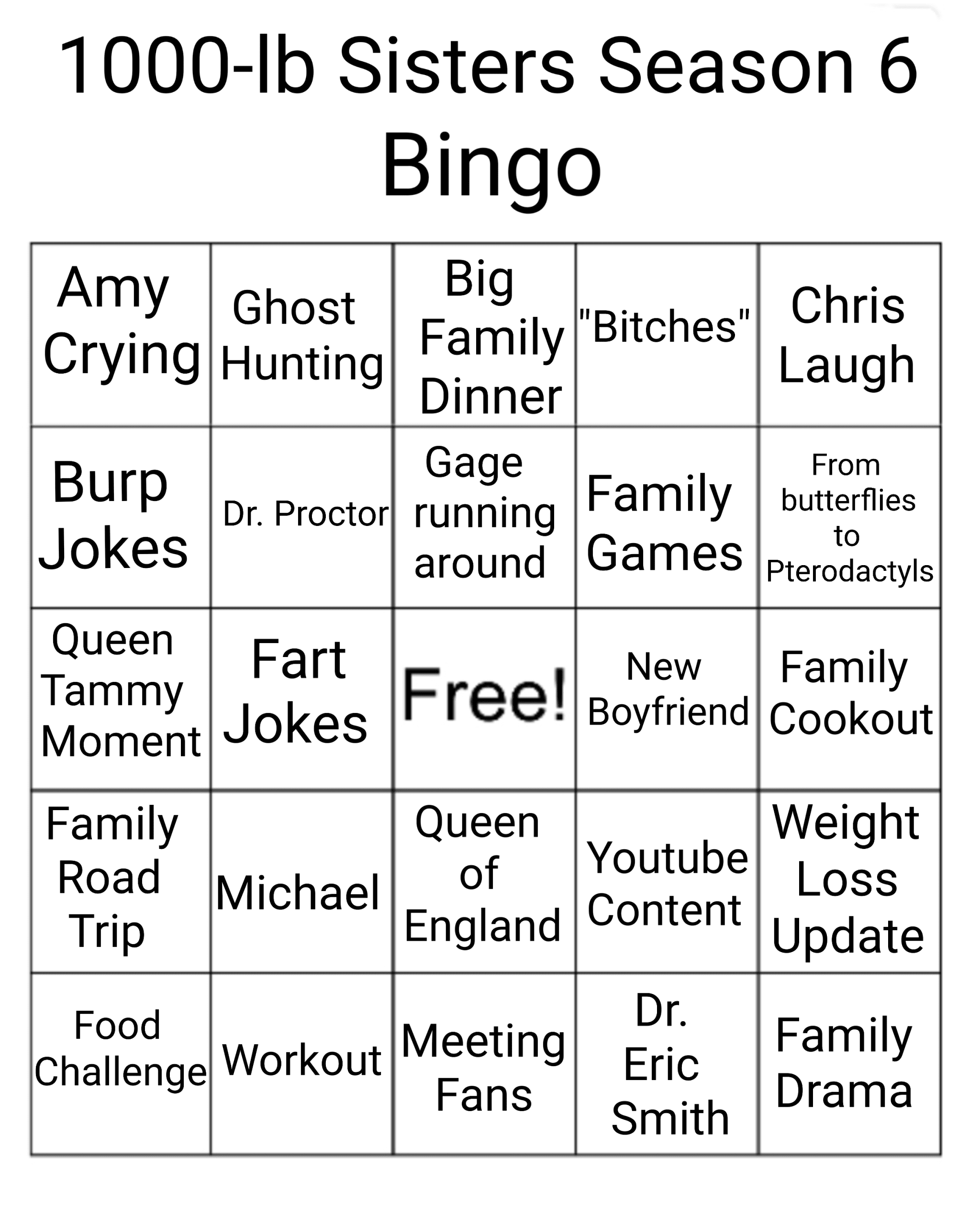 I decided to create Bingo Card for this show since Season 6 is coming tomorrow night on TLC. Thought you peeps might enjoy playing on what the Slaton Sisters and the family are up to as usual. Have fun!
