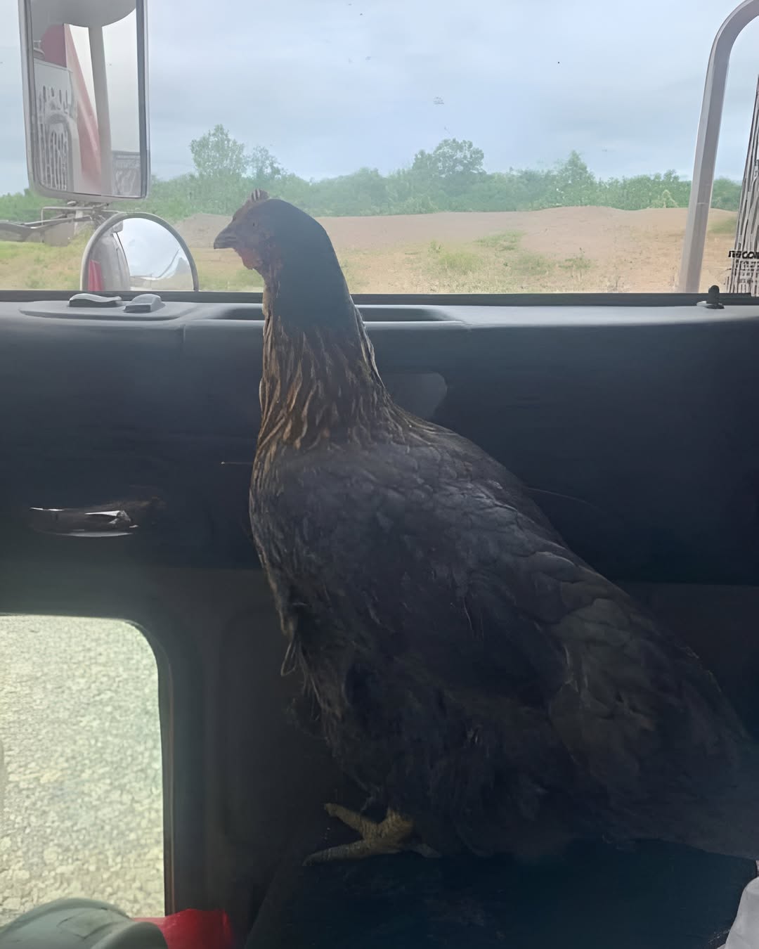 I don’t know how I missed her, I always put the bed up in the air, open the tailgate and use a flashlight to check everything before pulling out of the driveway. Best I can imagine, she was up on one of the axles or something underneath where I couldn’t see without getting under there with a creeper. She rode 40 miles from the house to the quarry 😅