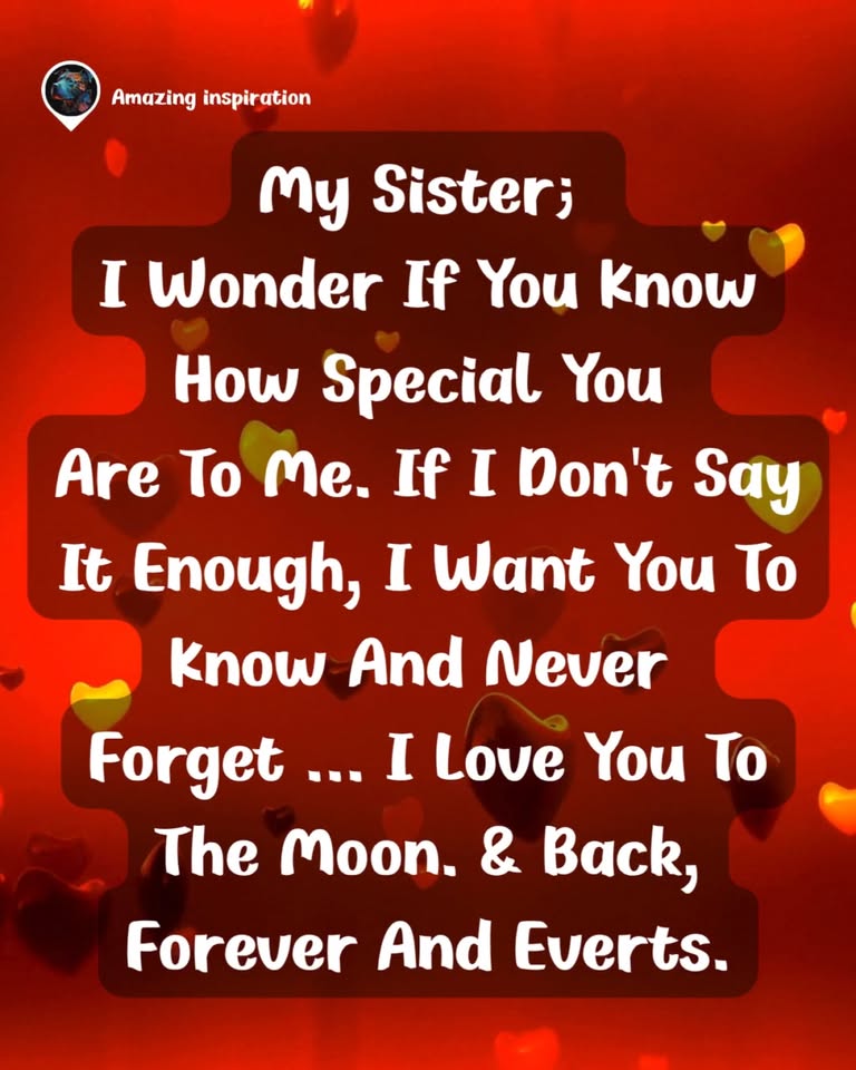 My Sister 💕 I wonder if you know how special you are to me 🌸 If I don’t say it enough, I want you to know and never forget 🌙 I love you to the moon & back, forever and ever ❤️