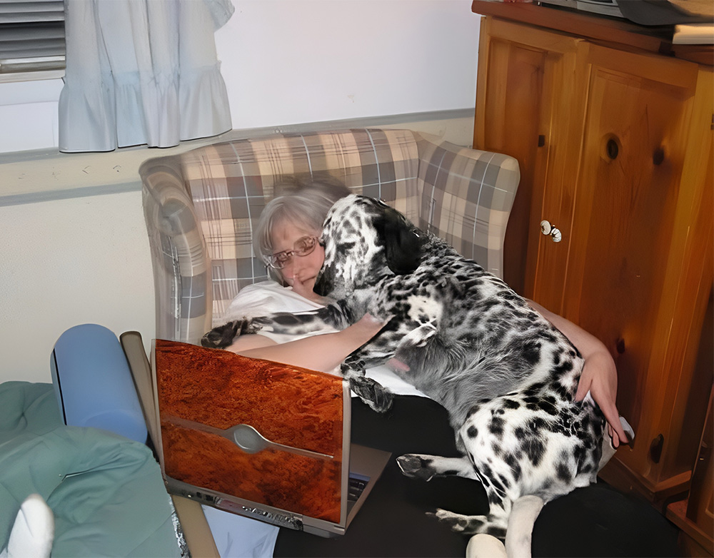 Casey came home with us that day. He was part of our family for 9 wonderful years until we lost him to a brain tumor. He was smart, mischievous, and endlessly loving. He bonded deeply with our smaller dog Toby, and every evening the two would howl together like it was their little ritual. After Casey passed, Toby never howled again.