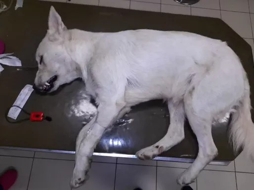 The dog – a street stray with no collar, no microchip, no history – was trembling but alive. When rescuers sedated him and examined his body, they braced for the worst: shattered bones, internal bleeding, spinal damage.