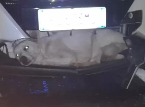 The driver felt the collision and pulled over, expecting only tragedy. Instead, he found something astonishing: the dog was alive, wedged between the bars of the car’s front grille. He hadn’t been thrown or crushed, he had been caught in the only place that could have saved him.