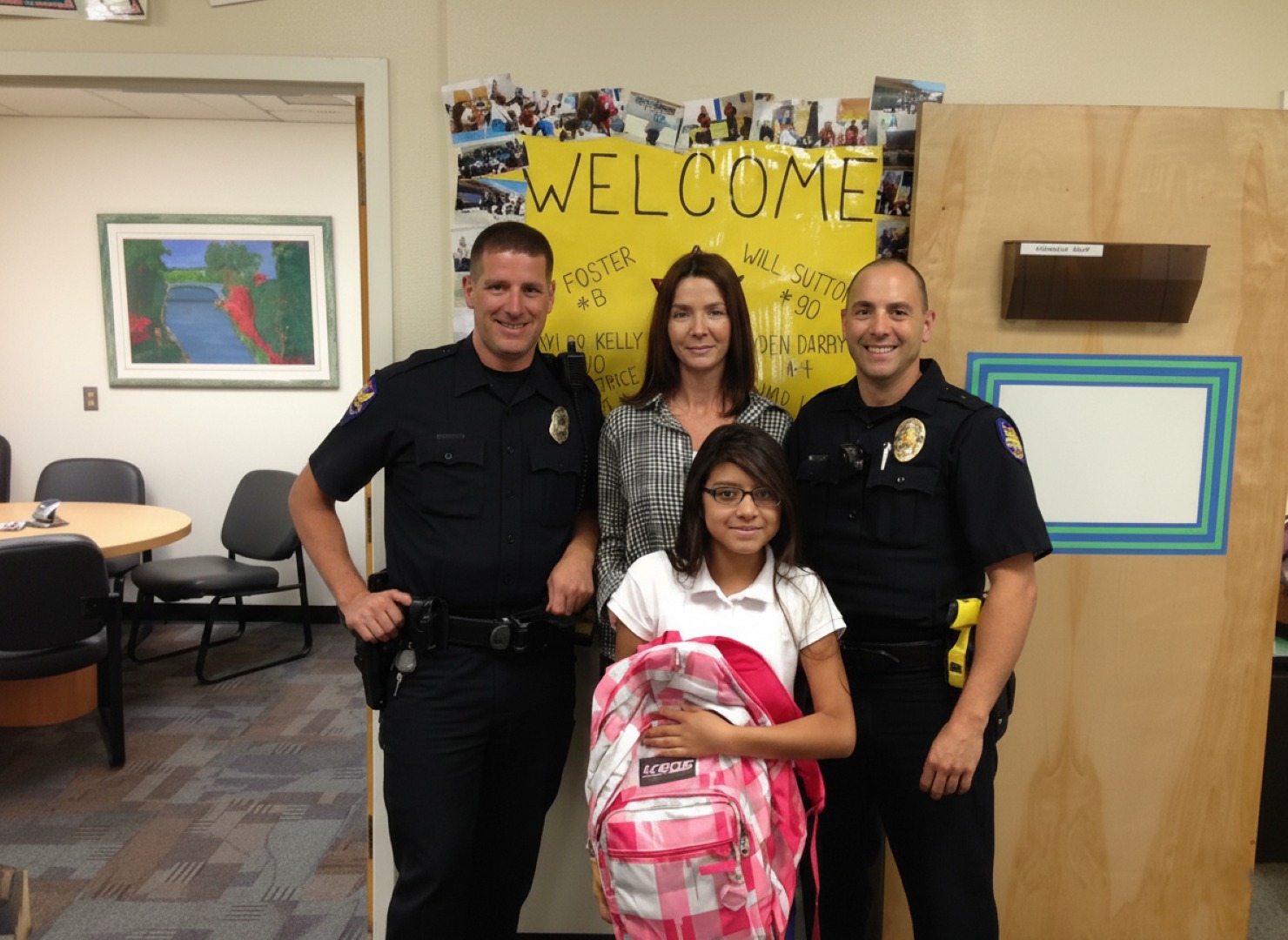 By the time Leslie finished her first class, the officers walked in and called her name. She stepped forward shyly… and then her whole face lit up. The tears were gone, replaced by the brightest smile.
