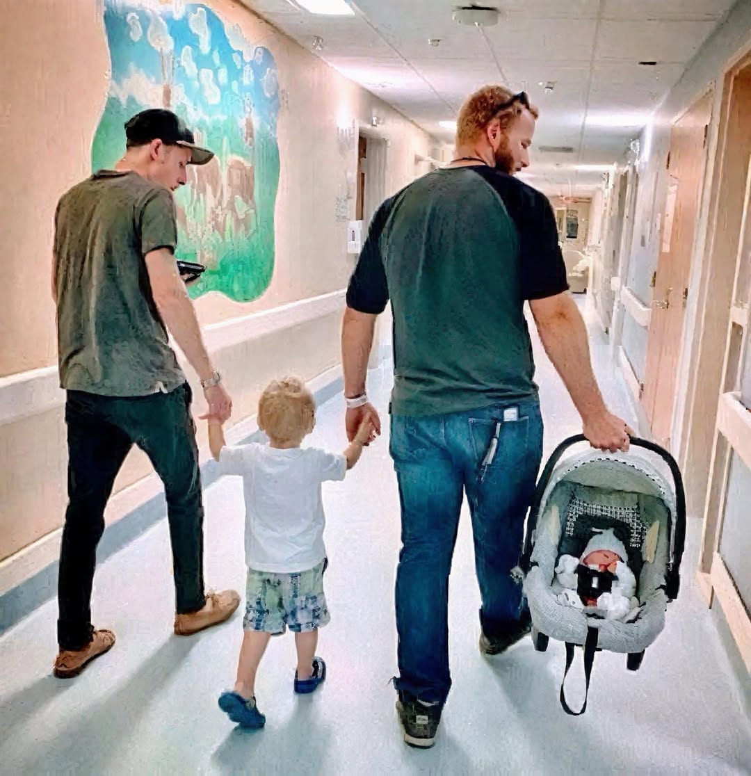 The guy on the right holding my sons’ Right hand is my fiancé, and the newborn baby Boy is our child.