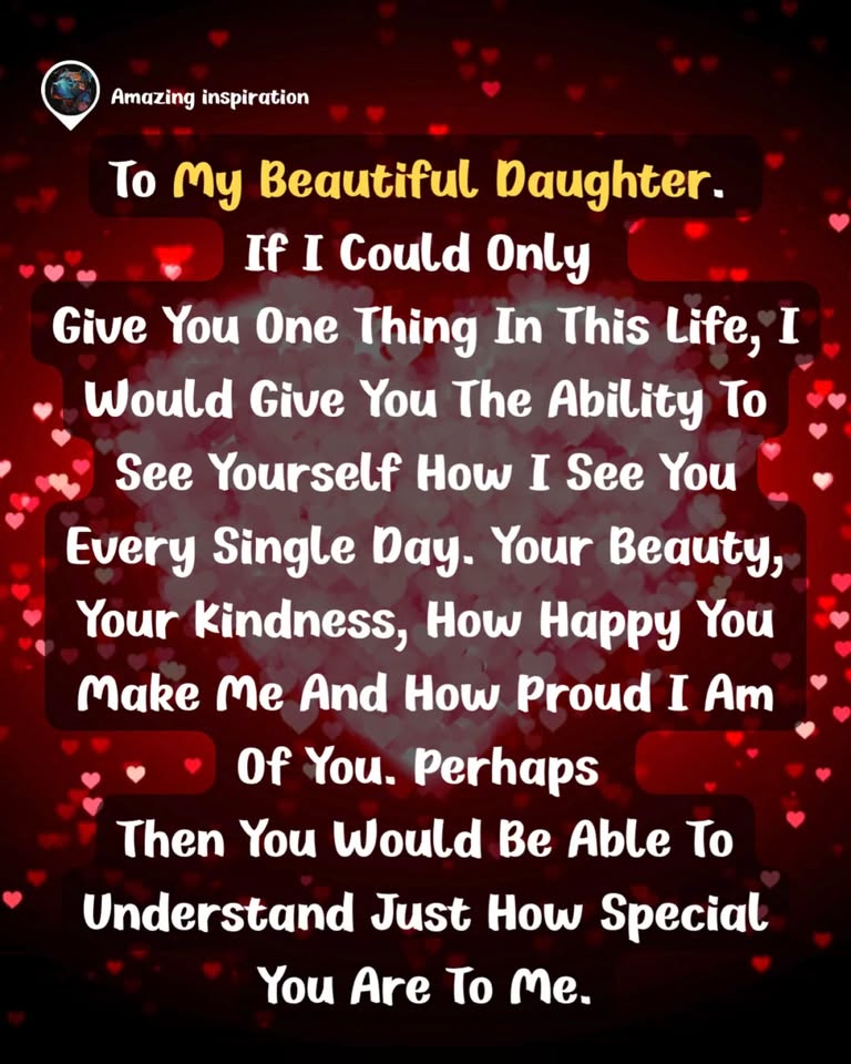 To my beautiful Daughter 💖 I wish you could see yourself the way I do 🌸 Your beauty, kindness & strength amaze me every day 💫 You are so special to me & I’m so proud ❤️