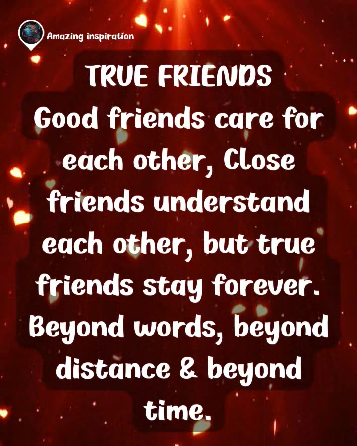 TRUE FRIENDS 💫 Good friends care for each other 🤗 Close friends understand each other 💕 but true friends stay forever — beyond words, beyond distance, and beyond time ❤️