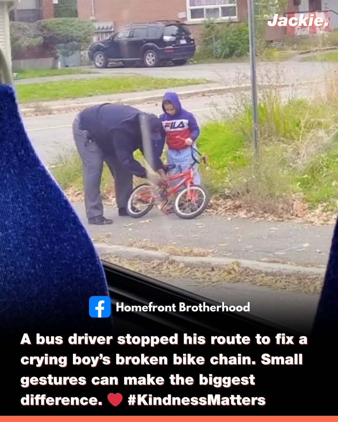 When a bus driver saw a boy crying over his broken bike chain, he didn’t just dr…
