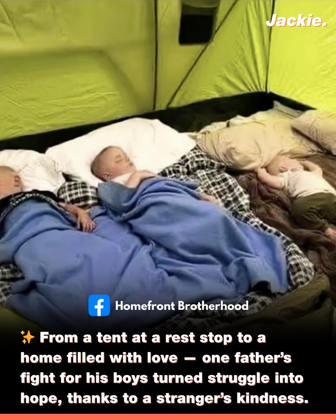 When one father was left alone with three little boys, survival meant turning heartbreak into “camping adventures” in a tent behind a rest stop. 💔 Then, a stranger’s kindness changed everything — leading him to a farm community that rebuilt their lives. Today, he shares cocoa and hope with other fathers who come seeking help. 🌟