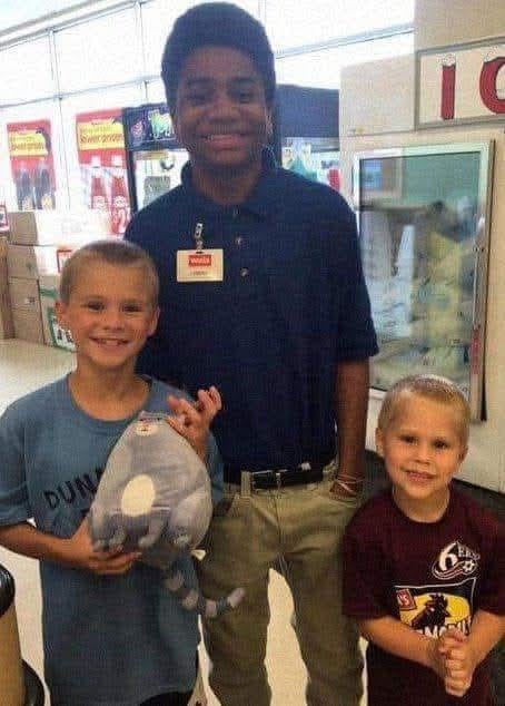 The young man, Lamont, is a cashier who was on his break. No one asked him to put money in the machine so my boys could play, this humble, young man did it out of the goodness/kindness in his heart. The boys and I thanked him numerous times. Yes, I even called his manager to “share a good story” for once.