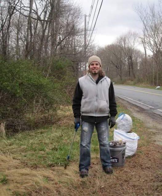 While driving down Spring Street in East Bridgewater, I noticed 12-15 full white trash bags lined up along both sides of the road. Eventually, I saw a young man, probably in his mid-twenties, with a bucket in hand, picking up trash. I drove past him slowly but only for half a mile before feeling compelled to turn my car around and ask him, “What are you doing?”