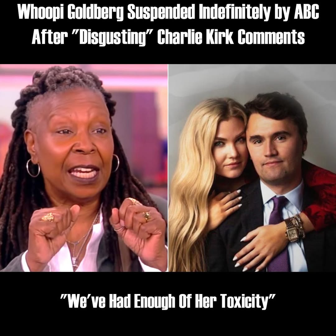 Whoopi Goldberg Suspended Indefinitely by ABC After “Disgusting” Charlie Kirk Co… Posted on September 28, 2025 - 6:29 am by Jack Whoopi Goldberg Suspended Indefinitely by ABC After “Disgusting” Charlie Kirk Comments, “We’ve Had Enough Of Her Toxicity”